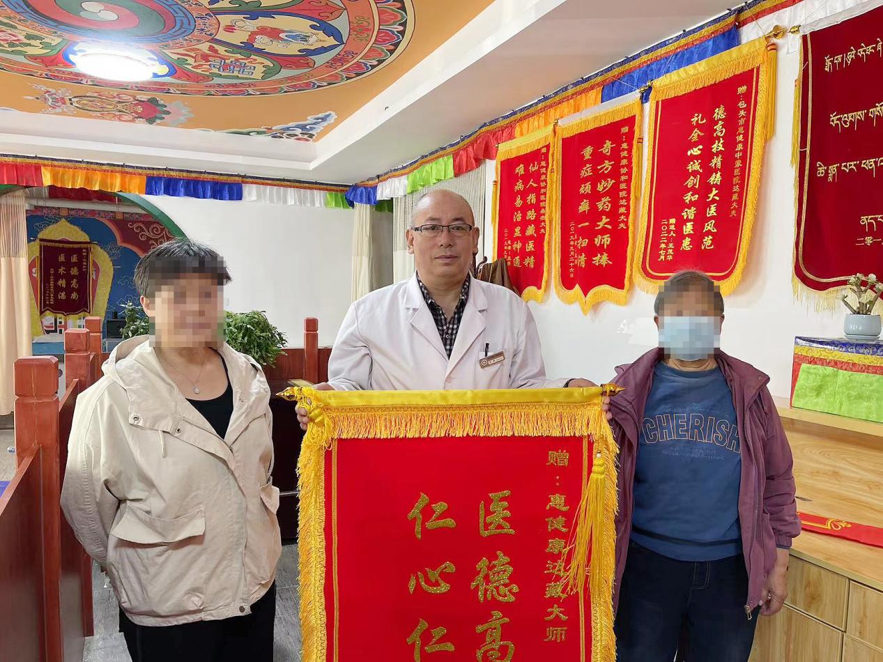 今晨,一面印有“医德高尚 仁心仁术”的锦旗送到包头惠健康藏医科达藏主任的手中。送锦旗的是东胜过来的母女二人,向为她母亲精心治疗和贴心照顾的达藏大师表达谢意,对他们高尚的医德与悉心的照顾给予高度赞扬,感激之情溢于言表。