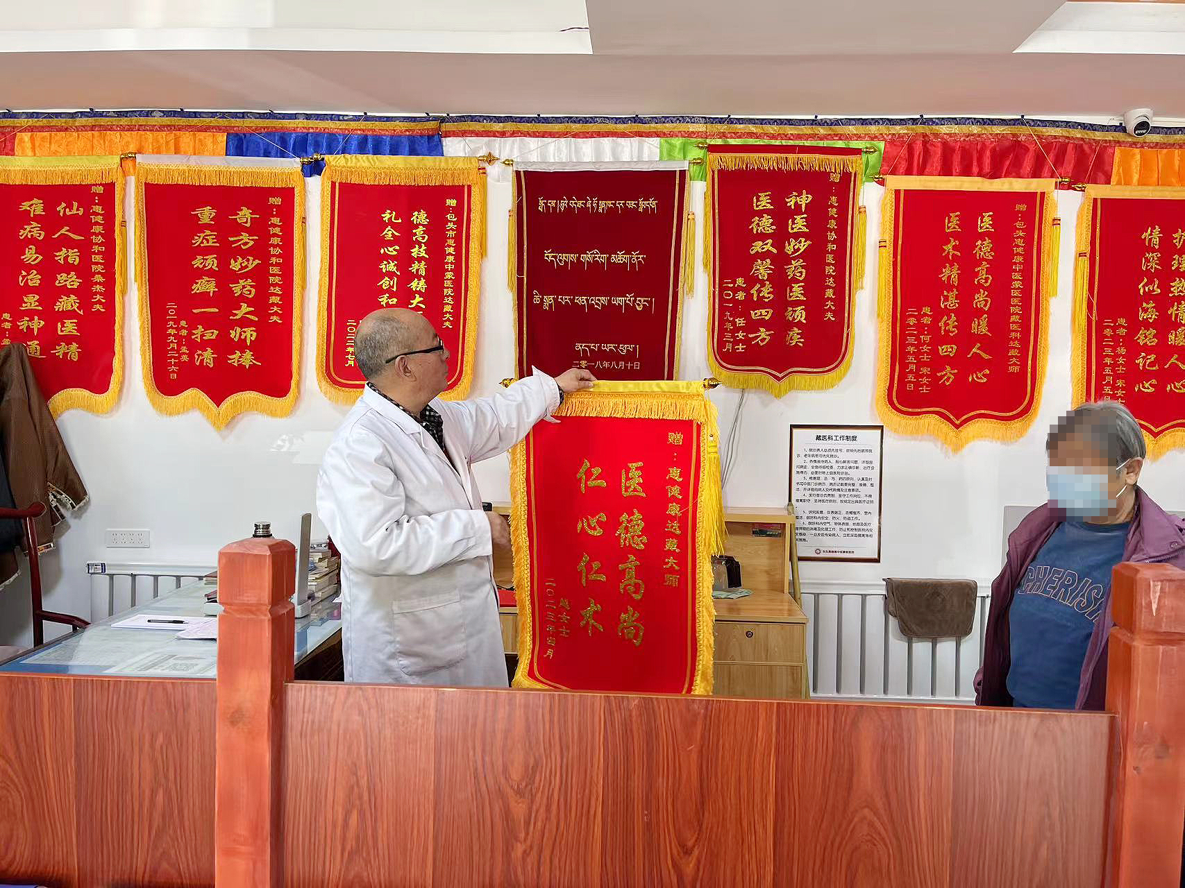 始于信任,忠于医技,敬于医德。鲜红的锦旗凝聚着浓浓的医患情意,朴实的言语,真挚的感激,彰显的是医患之间彼此的真诚与和谐!在锦旗的背后,闪耀着藏医科医护人员关爱病人、服务病人的崇高精神和道德情操,是荣誉,更是一种鞭策,也将激励我院全体医护人员继续努力,以更加专业的技术、贴心的服务回报患者,为鹿城市民的健康保驾护航。